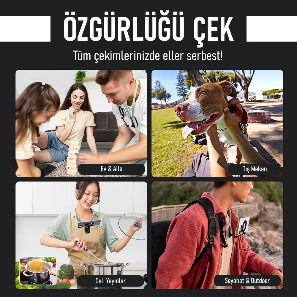 Telefonu ve aksiyon kameranı en pratik şekilde tak ve hemen çekime başla!